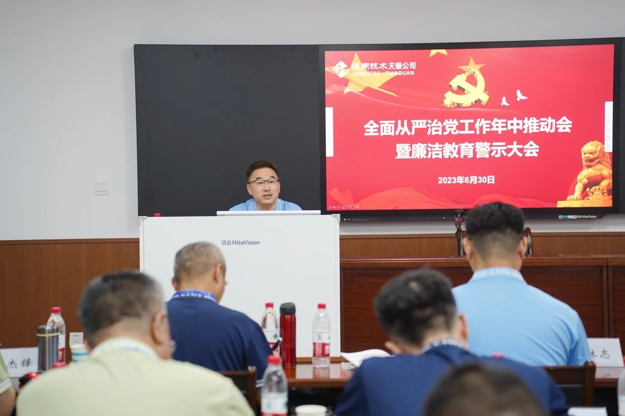 在專題黨課之后,紀(jì)委書記蘇杰鋒主持召開了公司全面從嚴(yán)治黨工作年中推動(dòng)會(huì)暨廉潔教育警示大會(huì)。會(huì)上,黨委副書記盧東領(lǐng)學(xué)了從嚴(yán)治黨有關(guān)文件材料,大家集體觀看了警示教育專題片。劉國福代表公司黨委與領(lǐng)導(dǎo)班子成員、各單位負(fù)責(zé)人、基層黨組織負(fù)責(zé)人進(jìn)行了集體談話,強(qiáng)調(diào)公司要堅(jiān)定不移推進(jìn)全面從嚴(yán)治黨,為創(chuàng)建世界一流企業(yè)營造風(fēng)清氣正的干事創(chuàng)業(yè)環(huán)境,要求各單位、各基層黨組織負(fù)責(zé)人發(fā)揮示范引領(lǐng)作用,做好本單位管黨治黨工作,做到清靜、干凈,知敬畏、有境界,不去想、不去做得不償失、悔之晚矣的事。