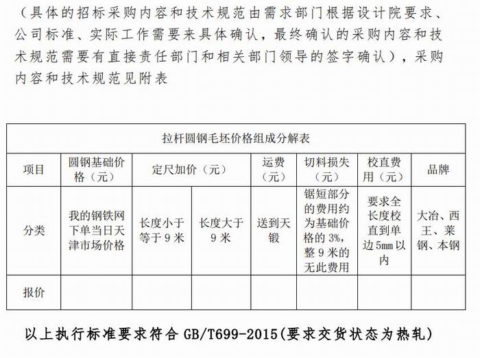 拉桿圓鋼毛坯年度招標公告