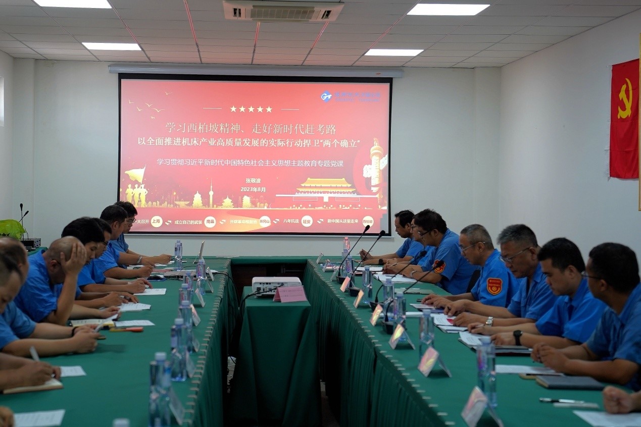 公司副總經理、黨委委員張敬波傳達學習了機床公司黨委書記、董事長唐毅主題教育專題黨課的主要內容。他從公司實際出發,系統解讀了習近平新時代中國特色社會主義思想的科學內涵,分析了當前機床板塊面臨的形勢與發展任務。強調全體員工一定要在實際工作中把“西柏坡精神”發揚光大,充分“挖掘”和發揮數控機床的潛力,以全新姿態做好世界一流專業領軍示范企業的創建工作。